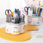 Hộp đựng bút thước, cọ make-up hình bông hoa 6 ngăn đế xoay 360°
