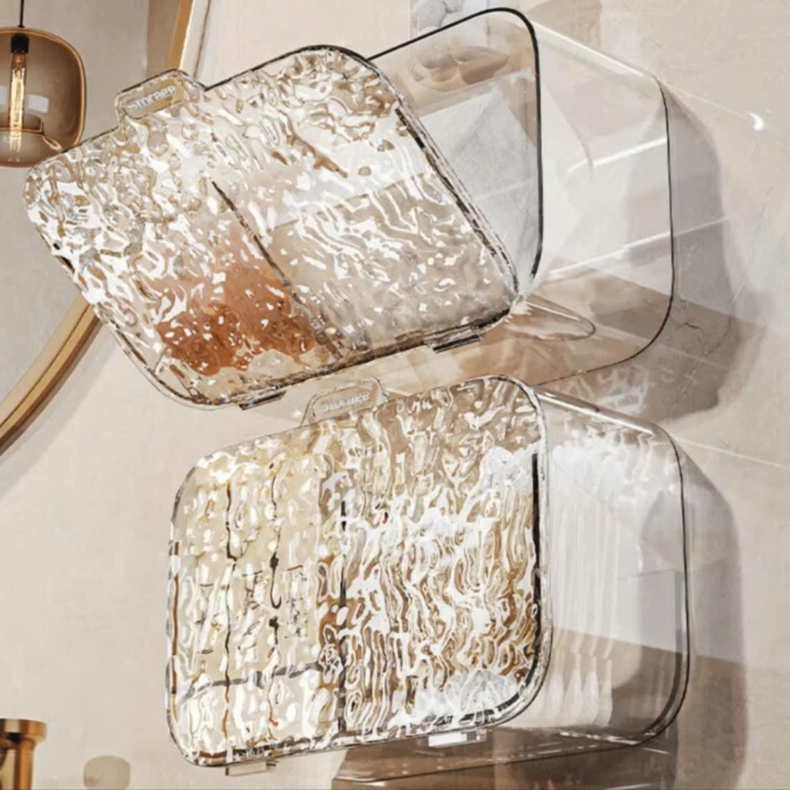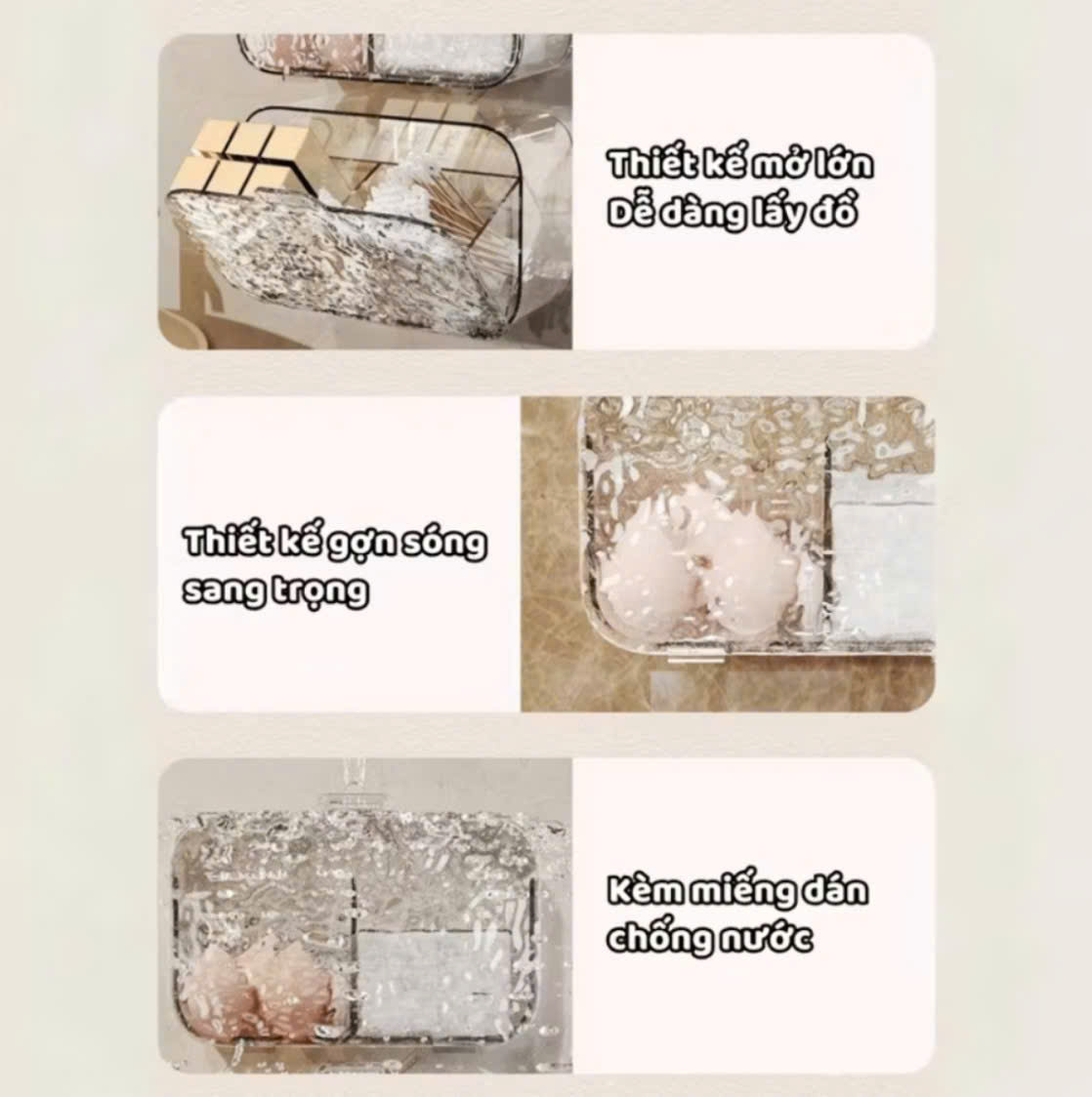 - Tiết kiệm không gian: Treo tường tiện lợi, giúp bàn trang điểm gọn gàng hơn