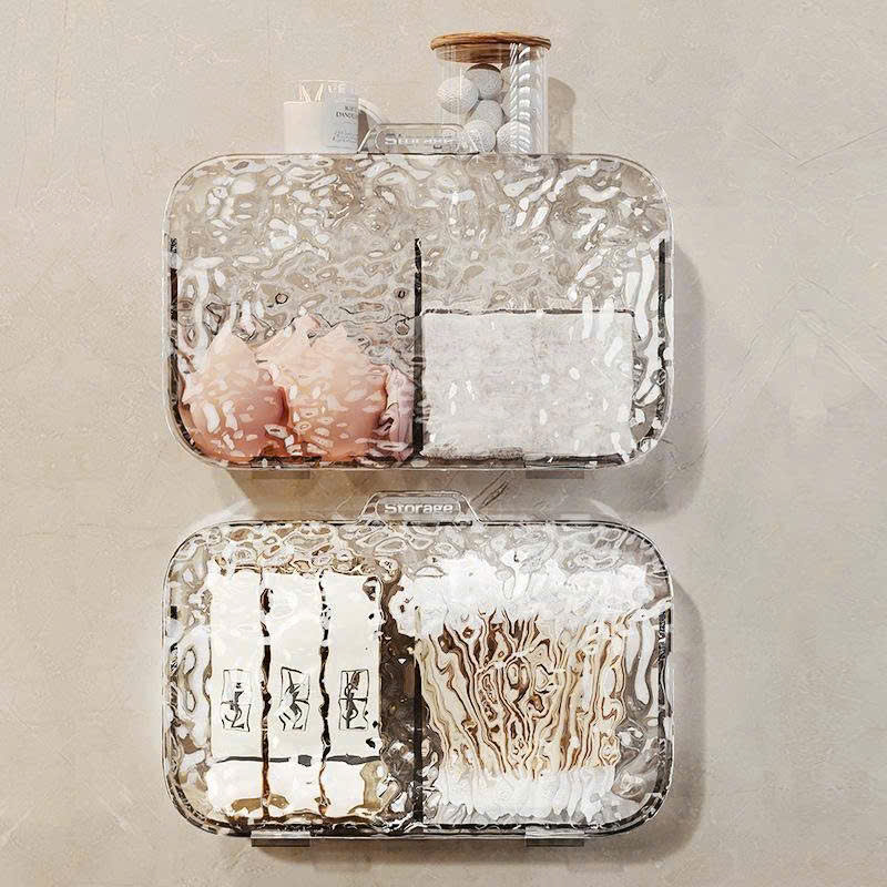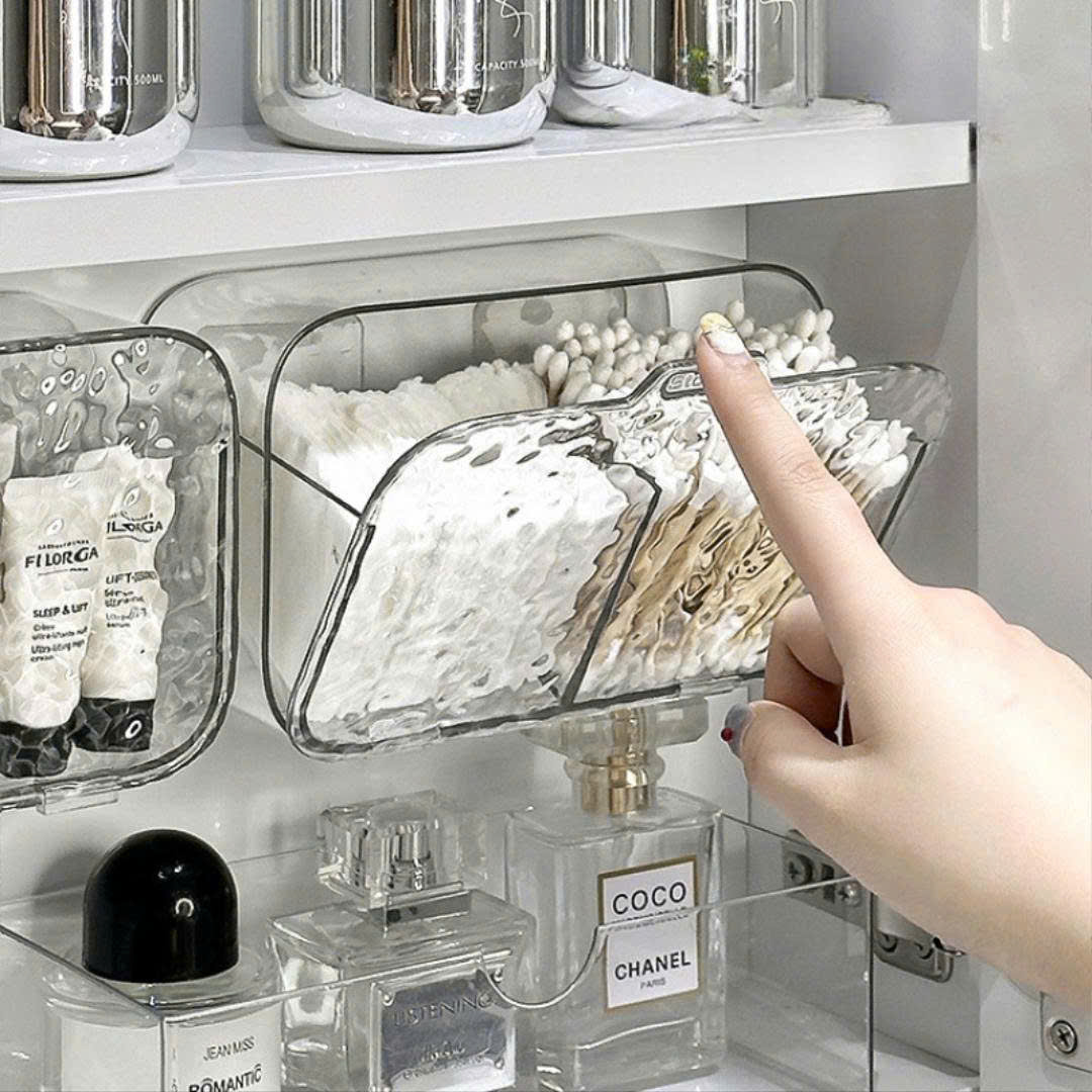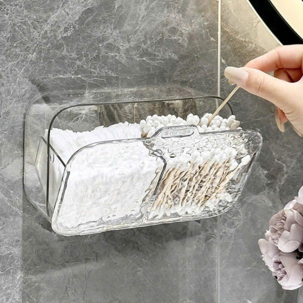 Hộp đựng bông tẩy trang, bông ngoáy tai 2 ngăn dán tường tiện lợi