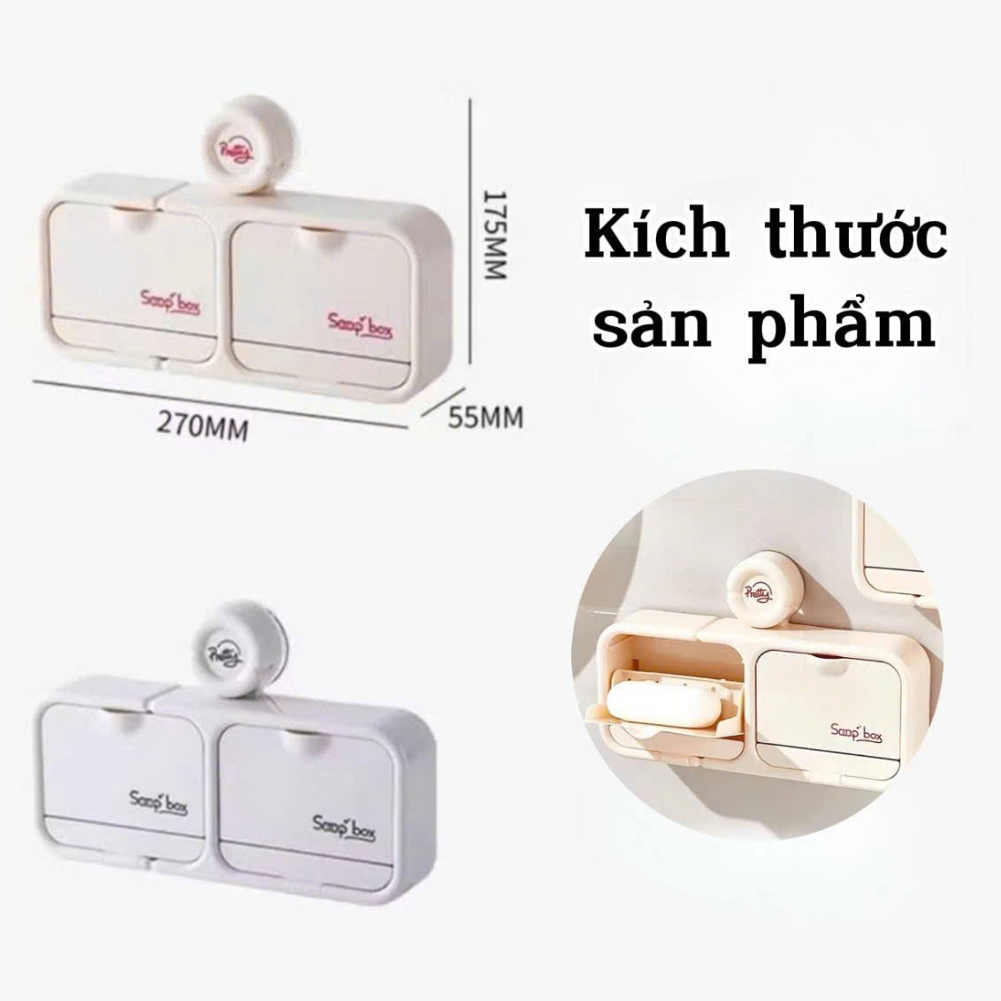 - Đóng gói gồm: 1 hộp đựng xà phòng 2 ngăn hút chân không treo tường