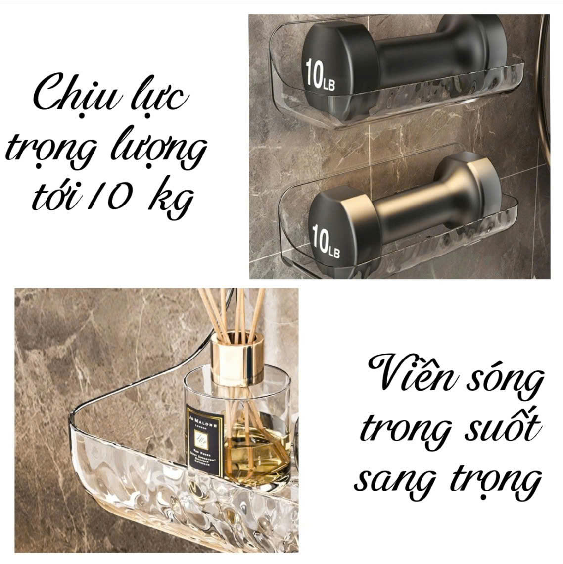 - Thiết kế: Kệ treo tường trong suốt, tối giản hiện đại, dán tường chắc chắn, không khoan đục